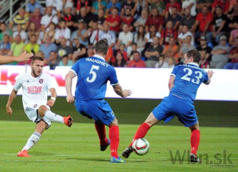 Prvý zápas 2. predkola Európskej ligy 2015/2016 medzi FC Spartak Trnava (SR) – Linfield FC (Sev. Ír.). Zlaté Moravce, 16. júl 2015. Foto: SITA/Martin Havran
