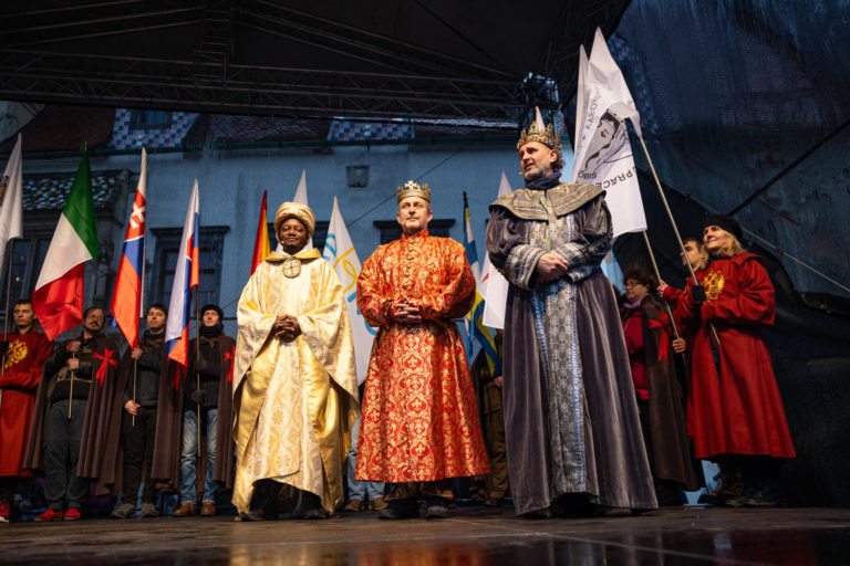 Atmosféra počas Trojkráľového sprievodu na Hlavnom námestí v Bratislave na sviatok Zjavenia Pána alebo sviatok Troch kráľov. Bratislava, 6. január 2024. Foto: SITA/Jana Birošová