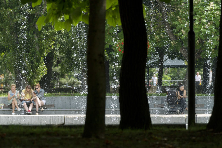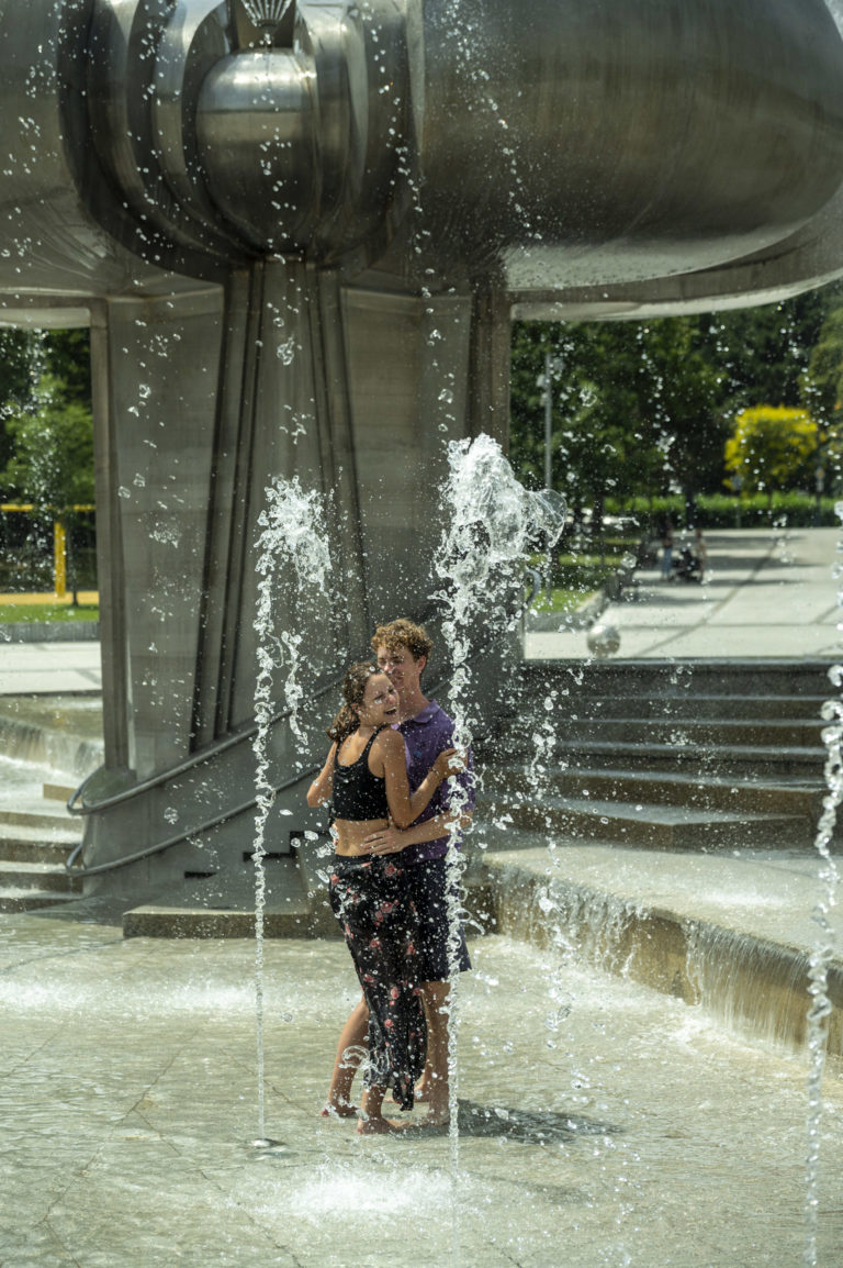 Atmosféra pri fontáne v Parku Andreja Hlinku v bratislavskom Ružinove počas tropických teplôt v uliciach hlavného mesta Bratislava. Bratislava, 21. júln 2024. Foto: SITA/Milan Illík