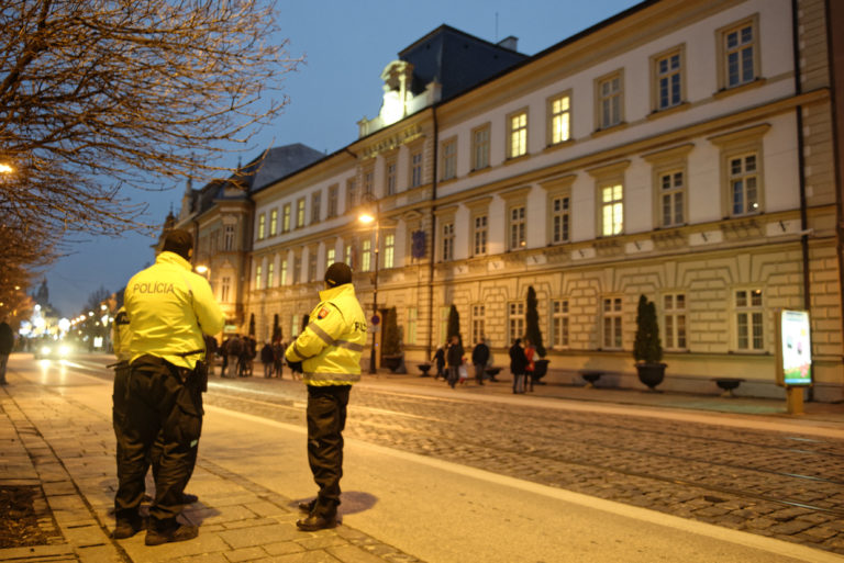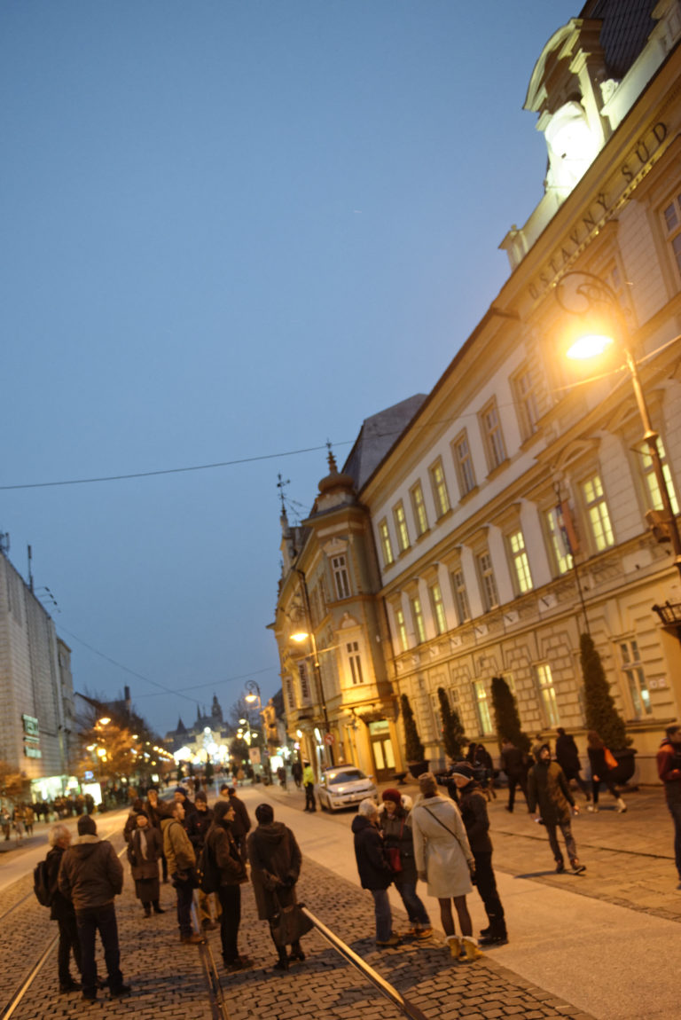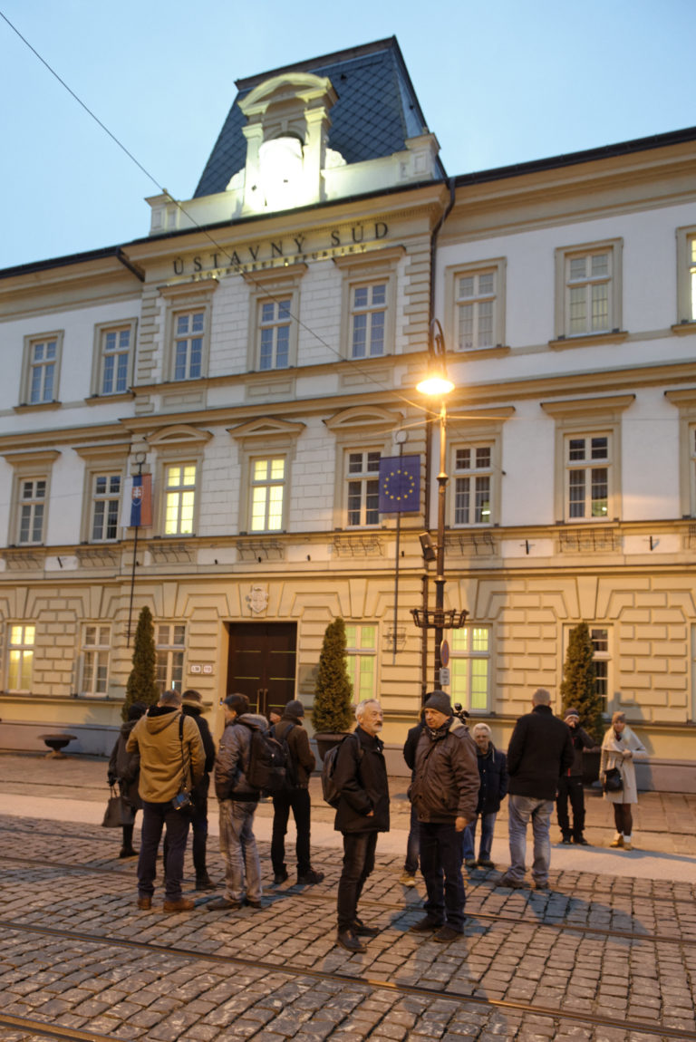 Zapálením sviečky pred Ústavným súdom SR mali prejaviť občania nesúhlas s politickým pozadím nových ústavných sudcov a vyjadriť nádej na zmenu k lepšiemu v budúcnosti. Na podujatí ale počet novinárov vysoko prevyšoval počet zúčastnených občanov. Košice, 20. december 2017. Foto: SITA/Ivan Fleischer.
