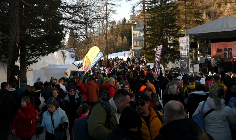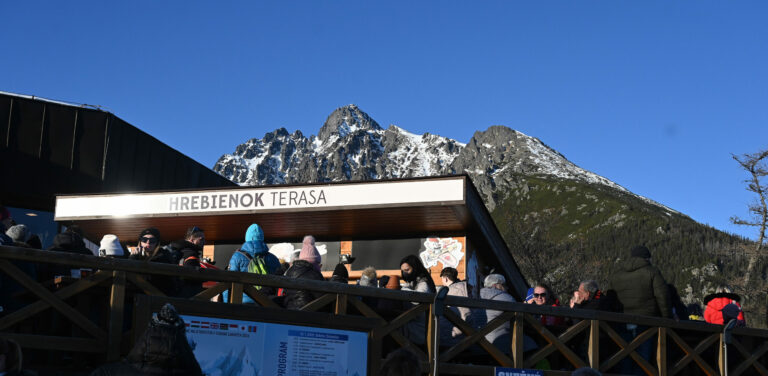 Pohľad na turistov prechádzajúcich cez turistické stredisko na vrchu Hrebienok nachádzajúcom sa nad Starým Smokovcom vo Vysokých Tatrách. Vysoké Tatry, 18. január 2025. Foto: SITA/Viktor Zamborský