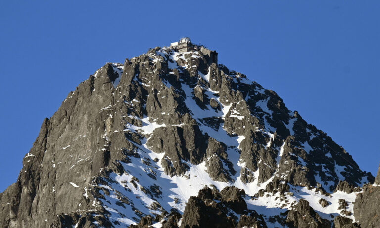 Pohľad na Lomnický štít (v pozadí) z turistického strediska Hrebienok vo Vysokých Tatrách. Vysoké Tatry, 18. január 2025. Foto: SITA/Viktor Zamborský
