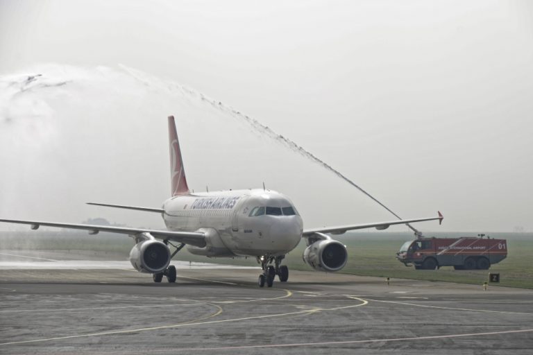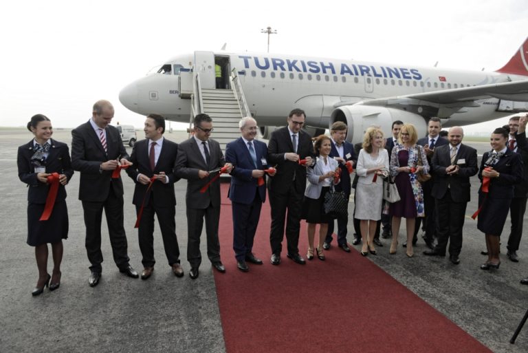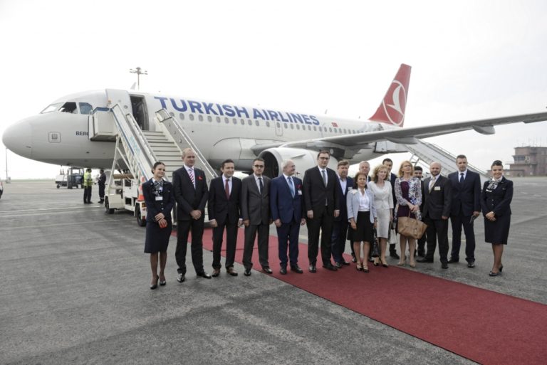 Slávnostný prílet prvého lietadla spoločnosti Turkish Airlines a prvých pasažierov pri príležitosti oficiálneho otvorenia leteckej linky medzi Istanbulom a Košicami. Košice 16. jún 2016. Foto: SITA/Ivan Fleischer