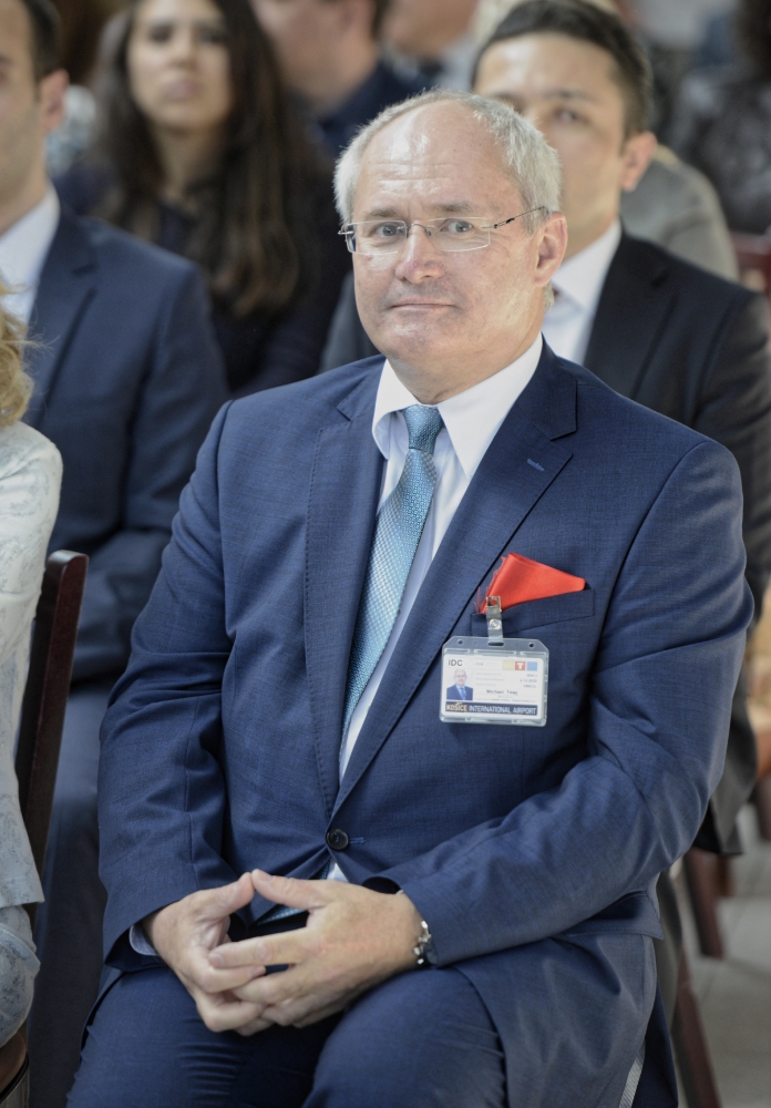 Riaditeľ spoločnosti Letisko Košice Michael Tmej na tlačovej besede počas slávnostného príletu prvého lietadla spoločnosti Turkish Airlines pri príležitosti oficiálneho otvorenia leteckej linky medzi Istanbulom a Košicami. Košice 16. jún 2016. Foto: SITA/Ivan Fleischer