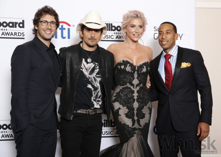 Josh Groban, zľava, Brad Paisley, Ke$ha a Ludacris. V Las Vegas sa udeľovali ocenenia Billboard Music Awards. Najviac ocenení si z podujatia odniesol spevák Justin Timberlake. Foto: SITA/AP