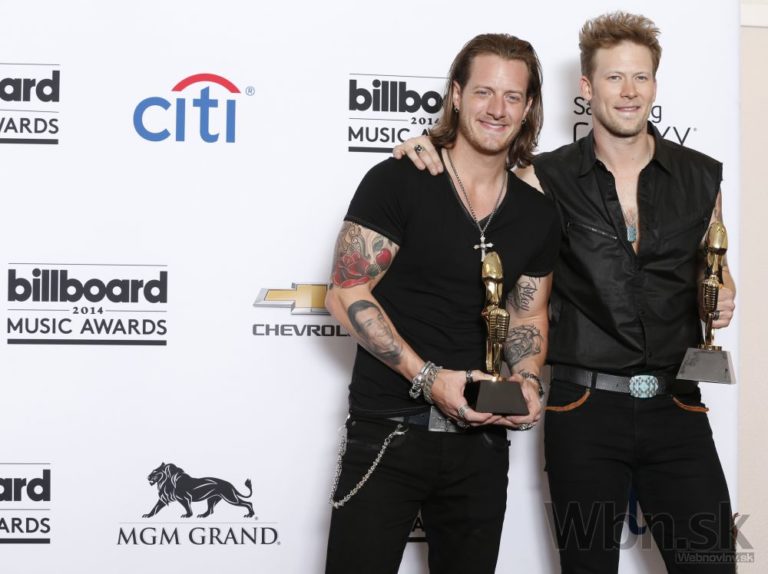 Tyler Hubbard, vľavo a Brian Kelley zo skupiny Florida Georgia Line. V Las Vegas sa udeľovali ocenenia Billboard Music Awards. Najviac ocenení si z podujatia odniesol spevák Justin Timberlake. Foto: SITA/AP