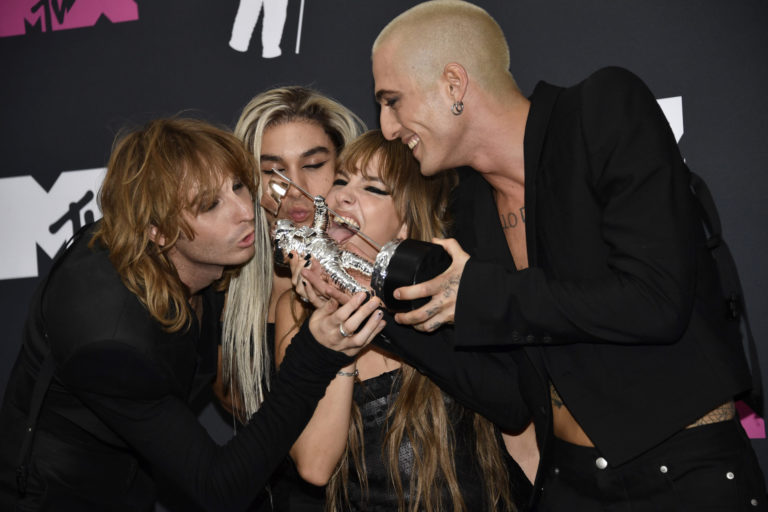 Skupina Måneskin na odovzdávaní cien MTV Video Music Awards. Foto: SITA/AP