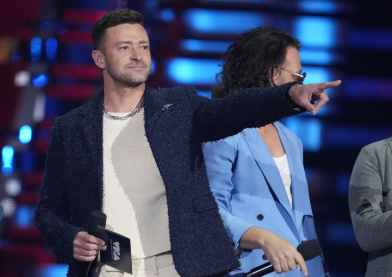 Justin Timberlake zo skupiny 'N Sync odovzdáva ocenenie za Najlepší pop počas udeľovania cien MTV Video Music Awards. Foto: SITA/AP