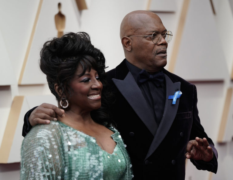 LaTanya Richardson Jackson a Samuel L. Jackson prichádzajú na udeľovanie cien Oscar 2022. Foto: SITA/AP