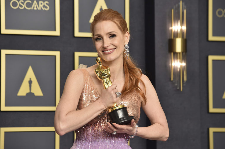 Cenu za hlavnú ženskú úlohu si prevzala Jessica Chastain (Očami Tammy Faye). Foto: SITA/AP