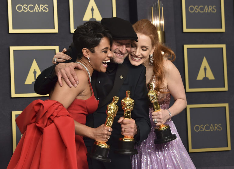 Zľava: Ariana DeBose, Troy Kotsur a Jessica Chastain. Foto: SITA/AP