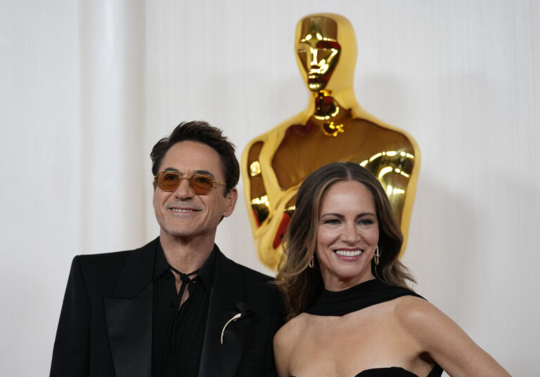 Robert Downey Jr. a Susan Downey počas príchodu na 96. ročník udeľovania cien americkej Akadémie filmových umení a vied (Oscar 2024). Los Angeles (Dolby Theatre), 10. marec 2024. Foto: SITA/AP.