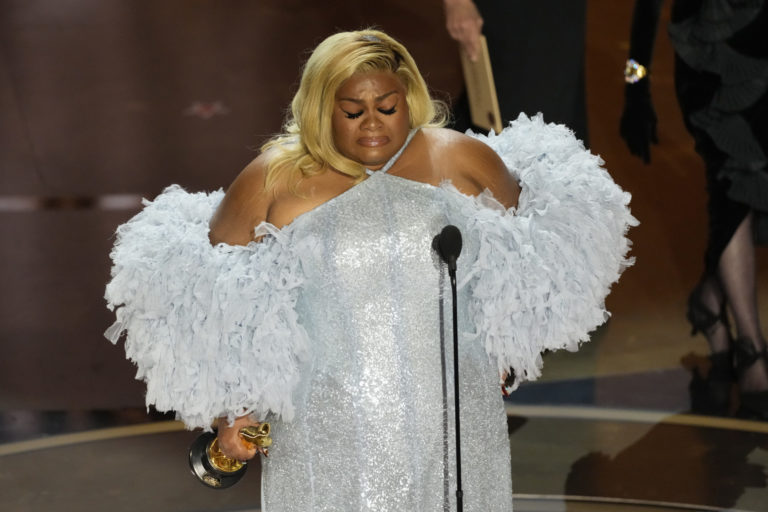 Da'Vine Joy Randolph počas ďakovnej reči, kedy získala Oscara za najlepší ženský herecký výkon vo vedľajšej úlohe za film "Zimné prázdniny" počas 96. ročníka udeľovania cien americkej Akadémie filmových umení a vied (Oscar 2024). Los Angeles (Dolby Theatre), 10. marec 2024. Foto: SITA/AP.