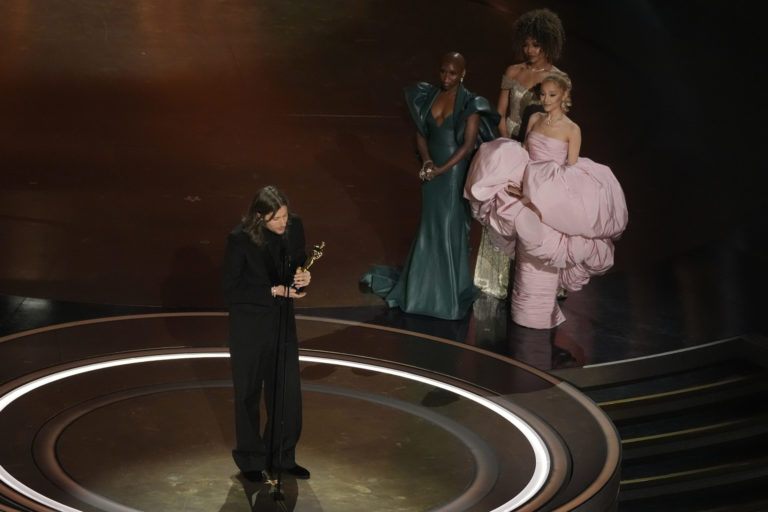 Ludwig Goransson získal Oscara za najlepšiu pôvodnú filmovú tvorbu pre "Oppenheimer" počas 96. ročníka udeľovania cien americkej Akadémie filmových umení a vied (Oscar 2024). Los Angeles (Dolby Theatre), 10. marec 2024. Foto: SITA/AP.