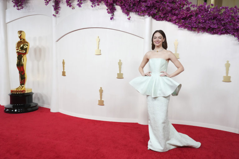 Emma Stone počas príchodu na 96. ročník udeľovania cien americkej Akadémie filmových umení a vied (Oscar 2024). Los Angeles (Dolby Theatre), 10. marec 2024. Foto: SITA/AP.