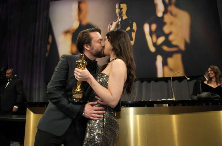 Kieran Culkin a Jazz Charton. K. Culkin získal Oscara za najlepší mužský herecký výkon vo vedľajšej úlohe na 97. ročníku udeľovania Oscarov. Foto: SITA/AP