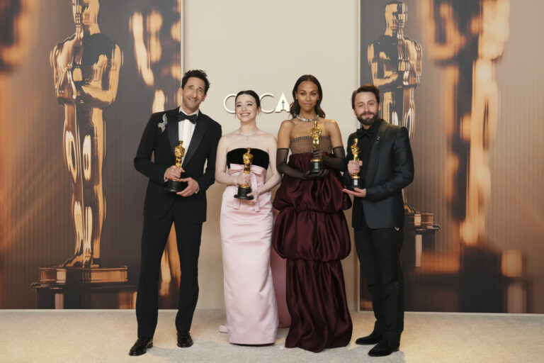 Zľava: Adrien Brody Mikey Madison, Zoe Saldana a Kieran Culkin získali ocenenia na 97. ročníku udeľovania cien Oscar. Foto: Jordan Strauss/Invision/AP
