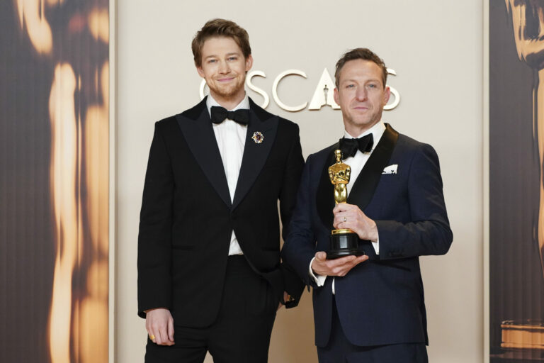 Joe Alwyn (vľavo) a Lol Crawley, víťaz Oscara na 97. ročníku udeľovania cien. Foto: Jordan Strauss/Invision/AP