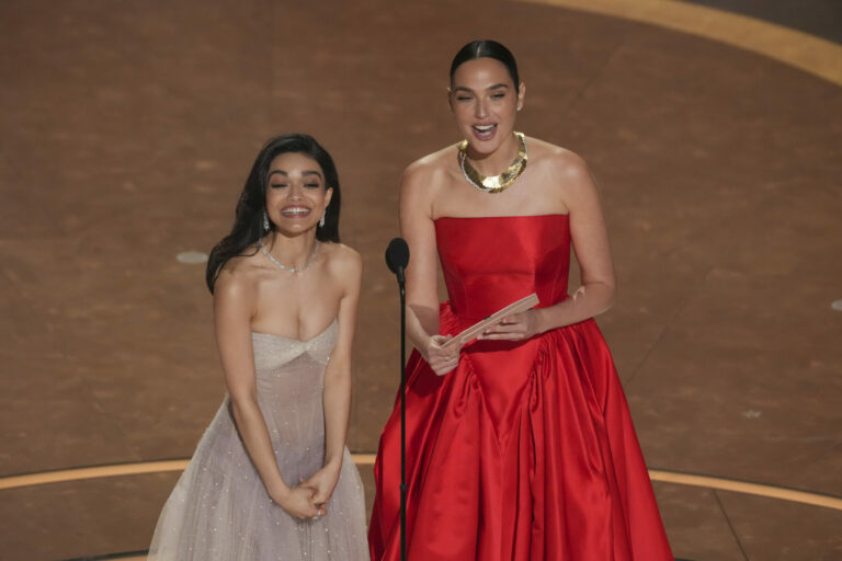 Rachel Zegler (naľavo) a Gal Gadot prezentujú cenu za najlepšie vizuálne efekty na 97. ročníku udeľovania Oscarov. Foto: SITA/AP