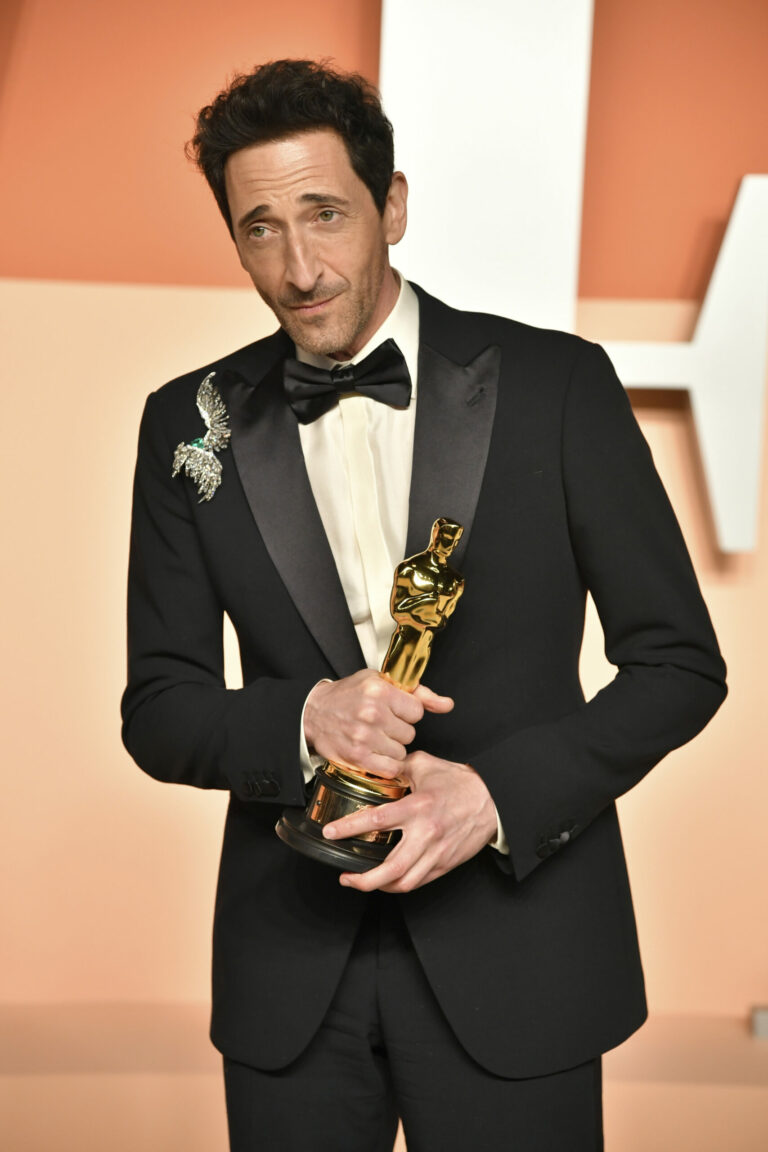 Adrien Brody so soškou Oscara na 97. ročníku udeľovania cien. Foto: Evan Agostini/Invision/AP