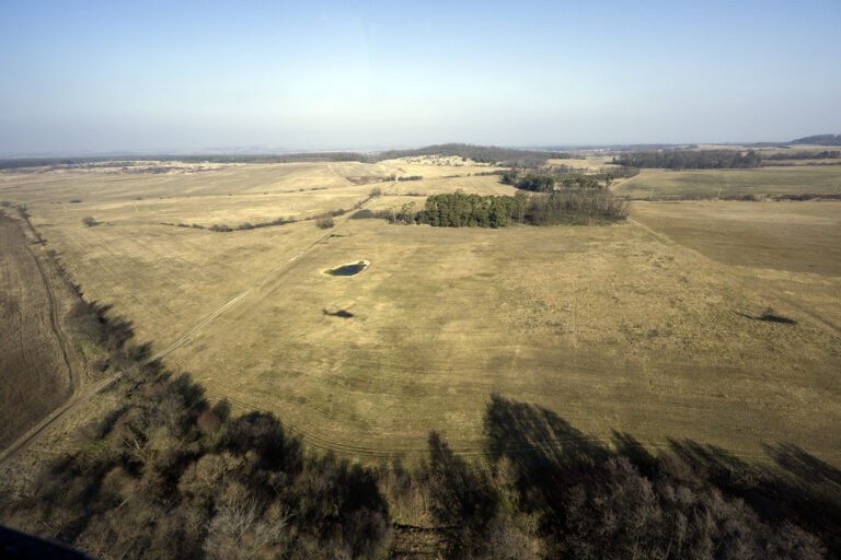 Pohľad z helikoptéry Ozbrojených síl SR počas ukážky zásahu bezpečnostných zložiek pri monitorovaní a ochrane kritickej infraštruktúry v rámci operácie Iron Stream pri leteckej základni Kuchyňa. Kuchyňa, 11. február 2025. Foto: SITA/Milan Illík
