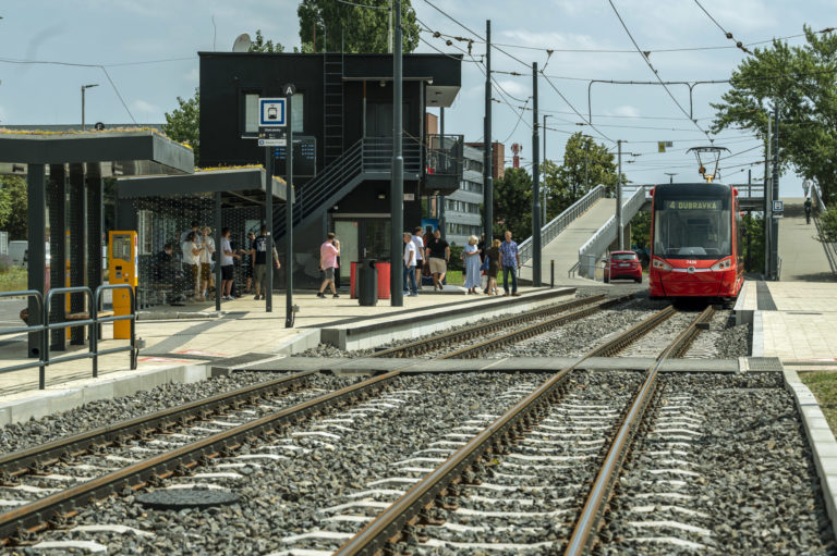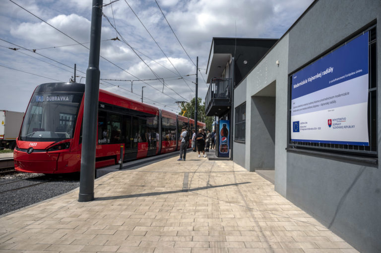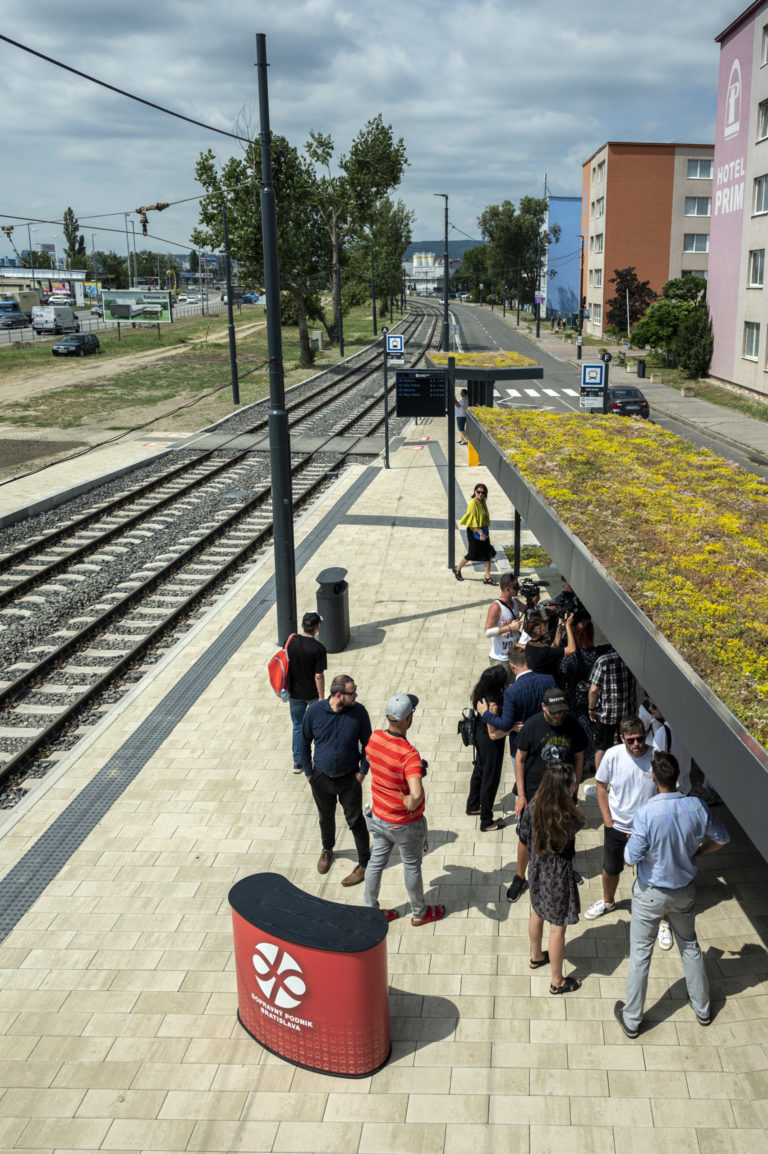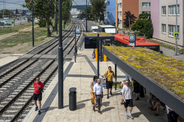 Zastávka Zlaté piesky v Bratislave počas ukončenia Projektu opravy trate a modernizácie zastávok Vajnorskej radiály. Bratislava, 26. jún 2024. Foto: SITA/Milan Illík