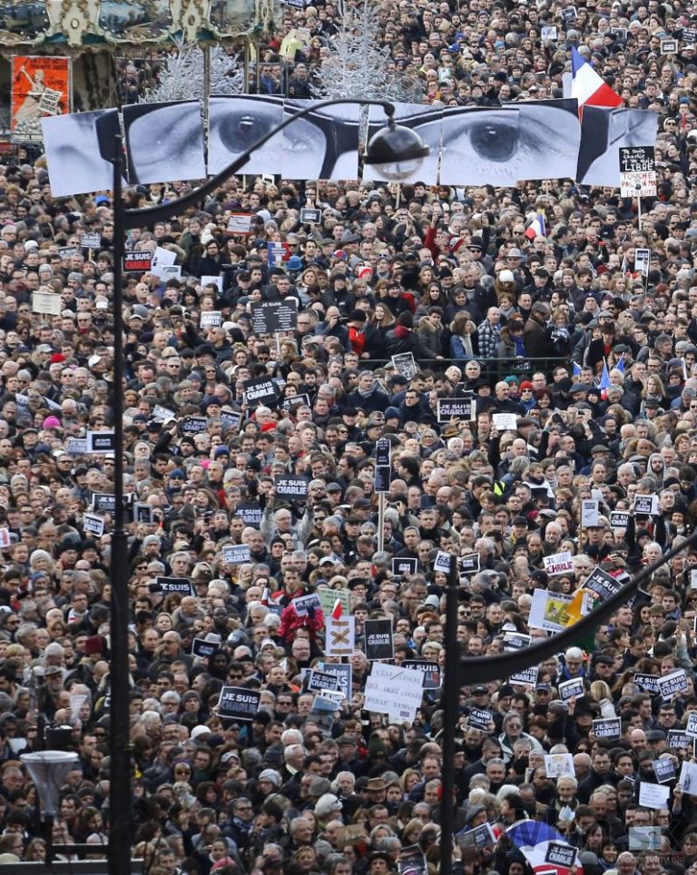 Ľudia prišli vyjadriť podporu a solidaritu Francúzom po tohtotýždňových teroristických útokoch. Na čele davu stoja viacerí európski lídri.