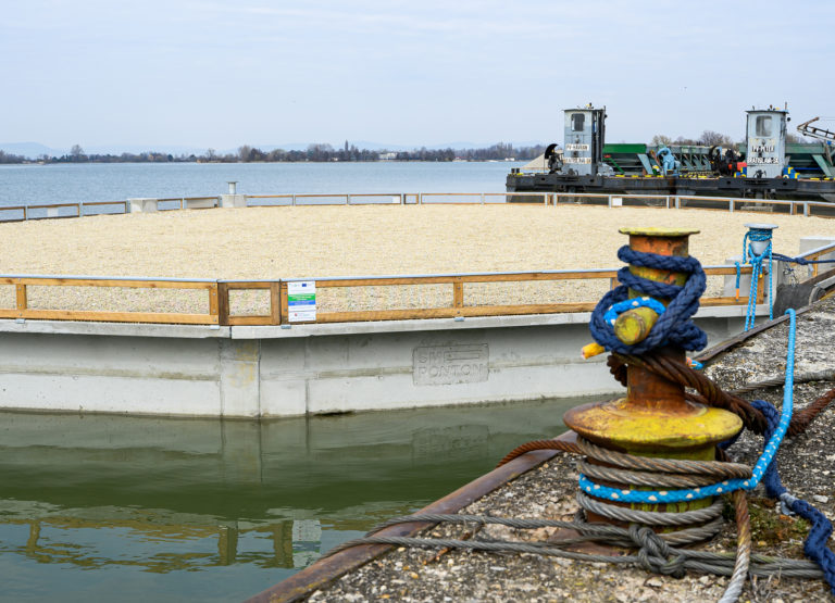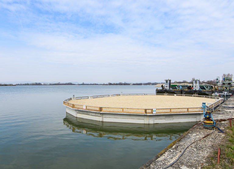 Umelý vtáčí ostrov, umiestnený na vodnej nádrži Sĺňava v prístave Ratnovce pri príležitosti Svetového dňa vody. Ratnovce, 22. marec 2023. Foto: SITA/Martin Havran.