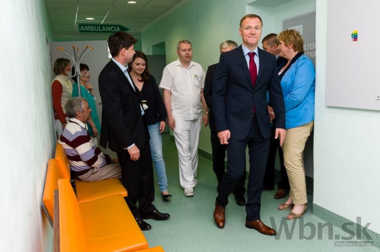 Minister zdravotníctva SR Viliam Čislák (vpravo v popredí) počas prehliadky zrekonštruovaných priestorov Očnej kliniky Univerzitnej nemocnice Martin (UNM) pri príležitosti tlačovej konferencie na tému: aktuálne pridelené finančné prostriedky na modernizáciu UNM. Martin, 5. jún 2015. Foto: SITA/Milo Fabian
