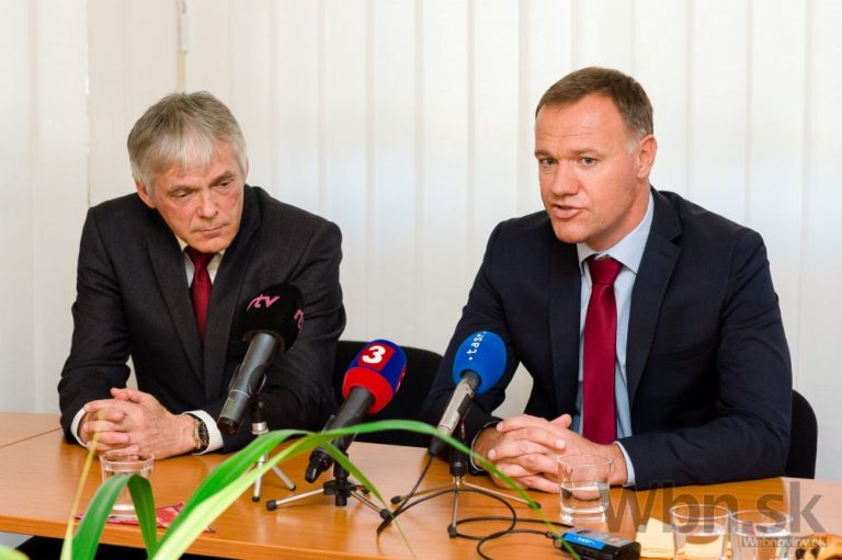 Sprava: Minister zdravotníctva SR Viliam Čislák a riaditeľ Univerzitnej nemocnice Martin (UNM) Dušan Krkoška počas tlačovej konferencie na tému: aktuálne pridelené finančné prostriedky na modernizáciu UNM. Martin, 5. jún 2015. Foto: SITA/Milo Fabian