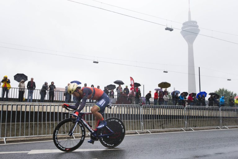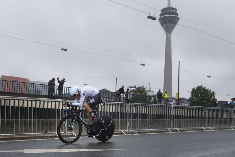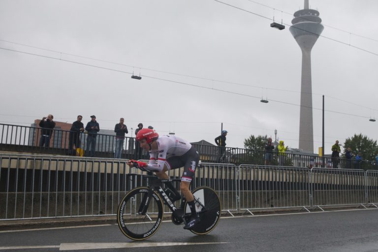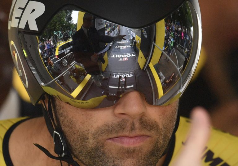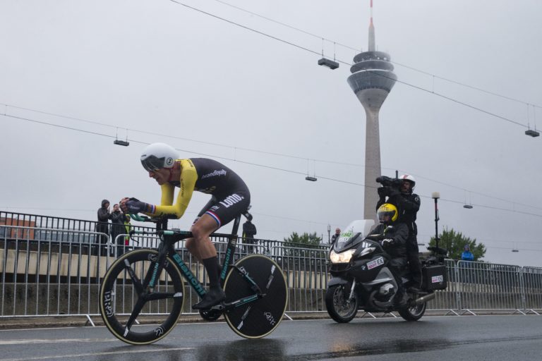 Holandský cyklista Bauke Mollema počas úvodnej etapy 104. ročníka Tour de France, ktorou bola časovka na 14 kilometrov. Düsseldorf , 1. júl 2017. Foto: SITA/AP.