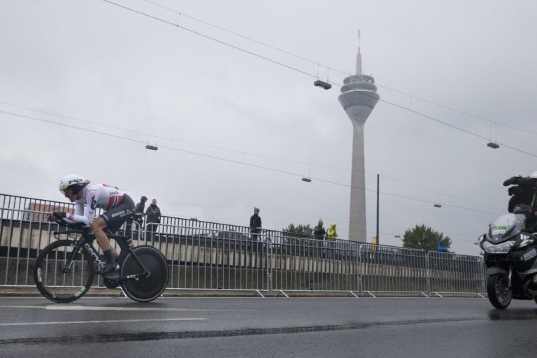 Nemecký cyklista Nils Politt počas úvodnej etapy 104. ročníka Tour de France, ktorou bola časovka na 14 kilometrov. Düsseldorf , 1. júl 2017. Foto: SITA/AP.