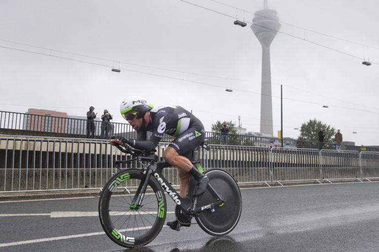 Britský cyklista Mark Cavendish z tímu Dimension Data počas úvodnej etapy 104. ročníka Tour de France, ktorou bola časovka na 14 kilometrov. Düsseldorf , 1. júl 2017. Foto: SITA/AP.