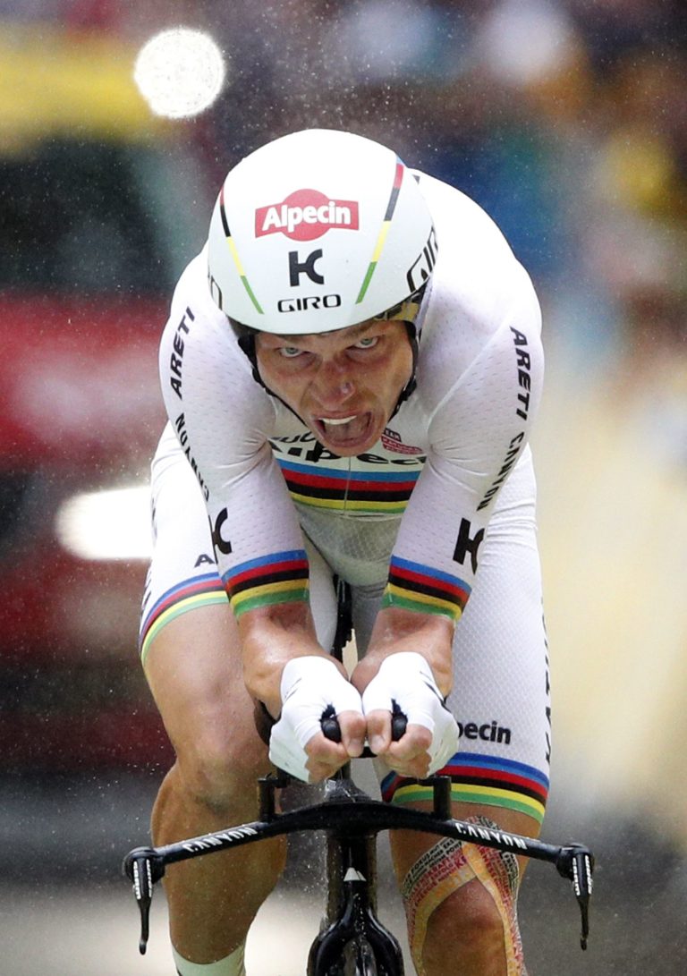 Slovenský cyklista Peter Sagan z tímu Bora-Hansgrohe počas úvodnej etapy 104. ročníka Tour de France, ktorou bola časovka na 14 kilometrov. Düsseldorf , 1. júl 2017. Foto: SITA/AP.