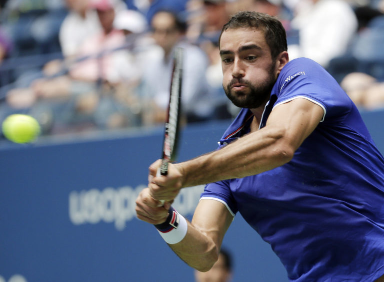 Chorvát Marin Čilič počas prvého kola US Open proti Američanovi Tennysovi Sandgrenovi. New York, 28. august 2017. Foto: SITA/AP