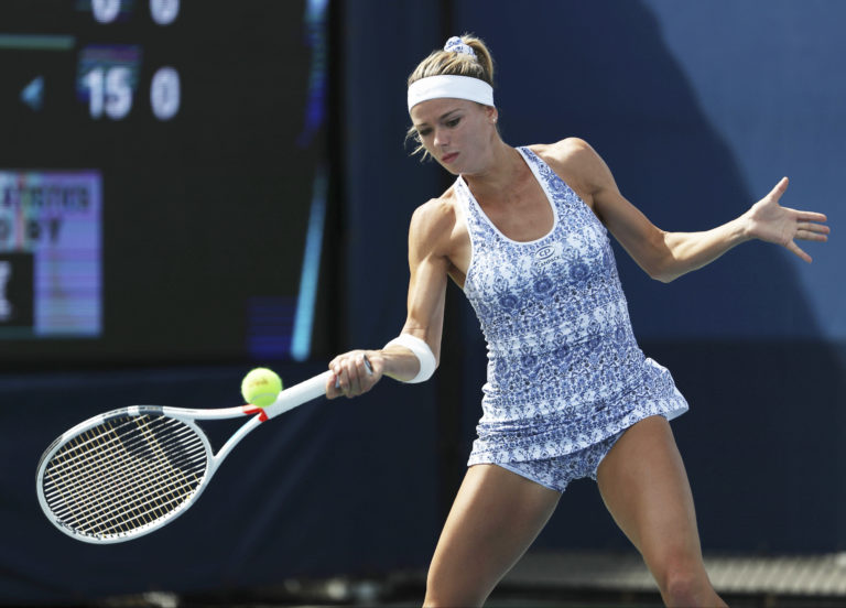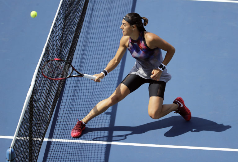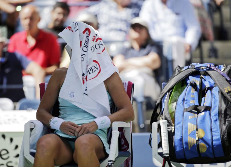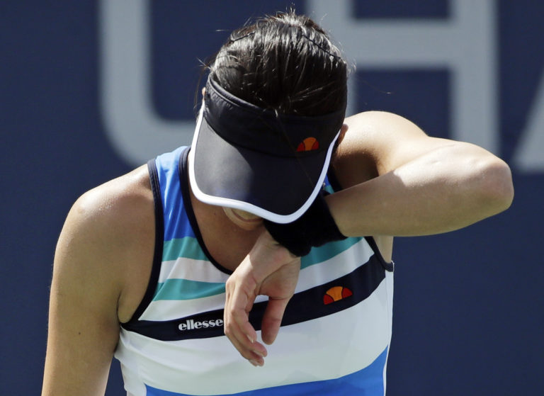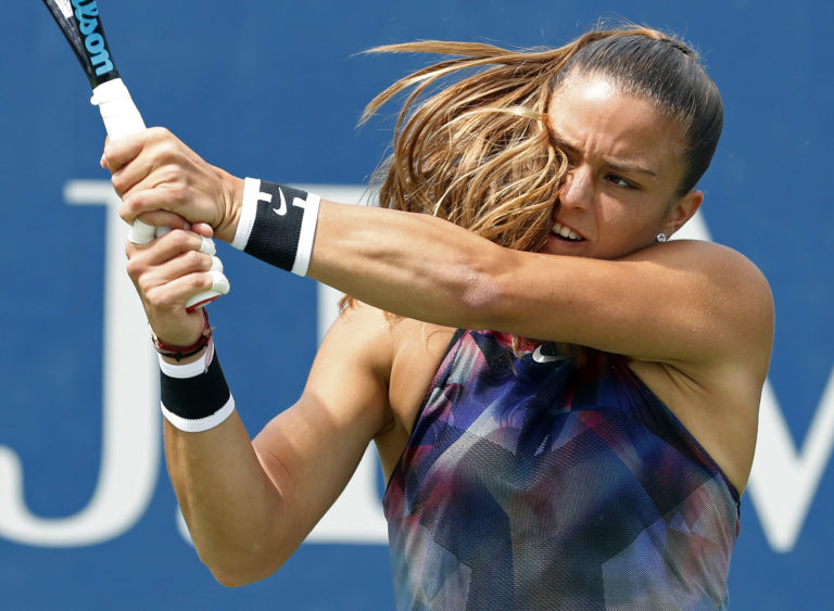 Talianka Camila Giorgiová počas zápasu 1. kola US Open proti Slovenke Magdaléne Rybárikovej, ktorej podľahla 3:6, 4:6. New York, 28. august 2017. Foto: SITA/AP