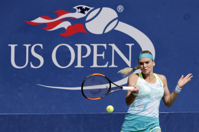 Češka Tereza Martincová počas prvého kola US Open proti Francúzke Caroline Garciovej, ktorej podľahla 0:6, 1:6. New York, 28. august 2017. Foto: SITA/AP