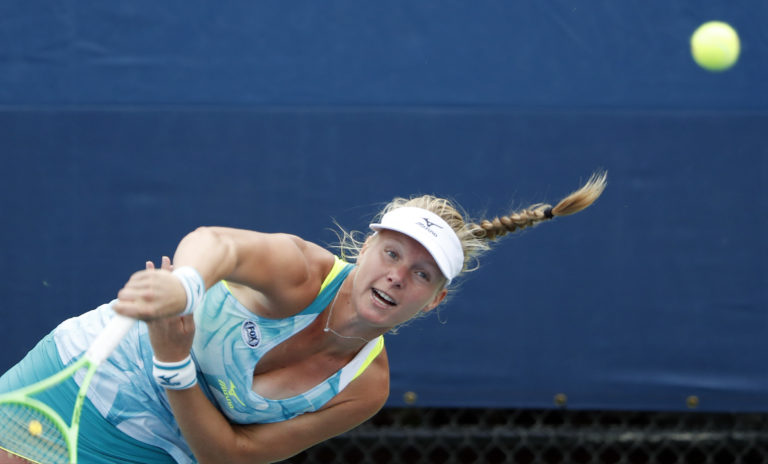 Holanďanka Kiki Bertensová počas zápasu 1. kola US Open proti Grékyni Marii Sakkariovej, ktorej podľahla 3:6, 4:6. New York, 28. august 2017. Foto: SITA/AP