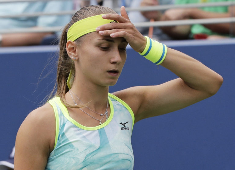 Američanka Varvara Lepčenková počas prvého kola US Open proti Garbine Muguruzovej-Blancovej, ktorej podľahla 0:6, 3:6. New York, 28. august 2017. Foto: SITA/AP