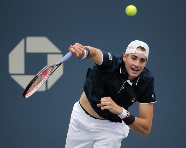 Američan John Isner počas zápasu prvého kola proti Francúzovi Pierrov-Huguesovi Herbertovi. New York, 28. august 2017. Foto: SITA/AP