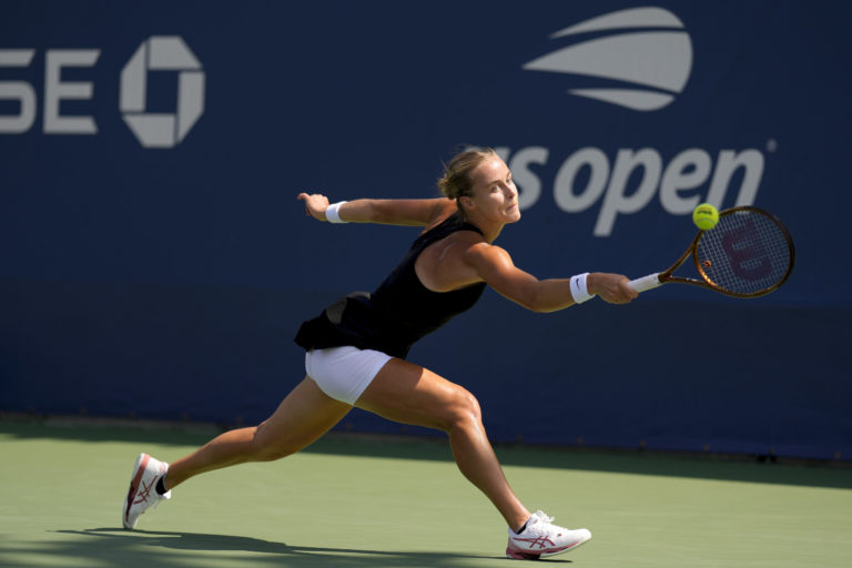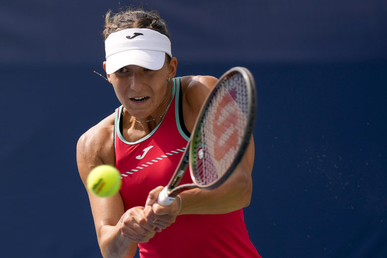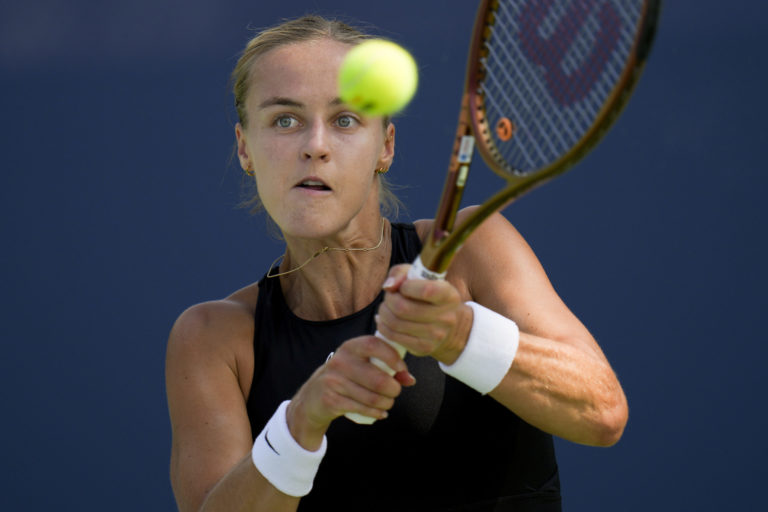 Rebeka Masárova podľahla slovenskej tenistke Anne Karolíne Schmiedlovej v stredajšom zápase 2. kola  za 95 minút 7:6 (0), 6:2. Foto: SITA/AP