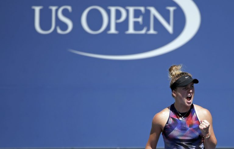Ukrajinská tenistka Elina Svitolinová počas zápasu úvodného kola US Open, v ktorom zdolala Češku Kateřinu Svitolinovú 6:0, 6:7 (5), 6:3. New York, 30 august 2017. Foto: SITA/AP.