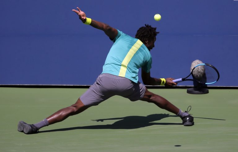 Francúzsky tenista Gael Monfils počas zápasu úvodného kola US Open, v ktorom zdolal krajana Jérémyho Chardyho 7:6 (6), 6:3, 6:4. New York, 30. august 2017. Foto: SITA/AP.