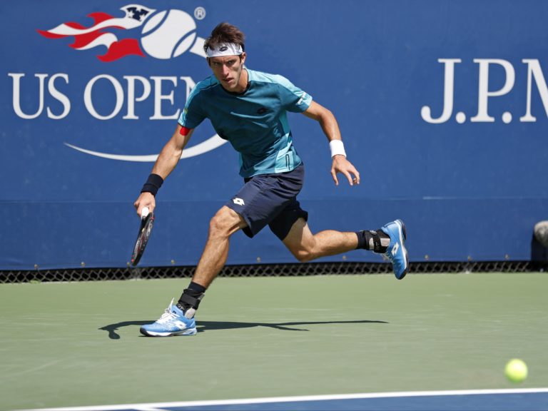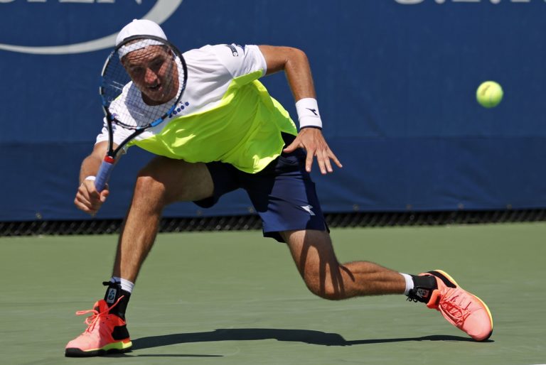 Argentínsky tenista Leonardo Mayer počas zápasu úvodného kola US Open, v ktorom zdolal Francúza Richarda Gasqueta 3:6, 6:2, 6:4, 6:2. New York, 30. august 2017. Foto: SITA/AP.