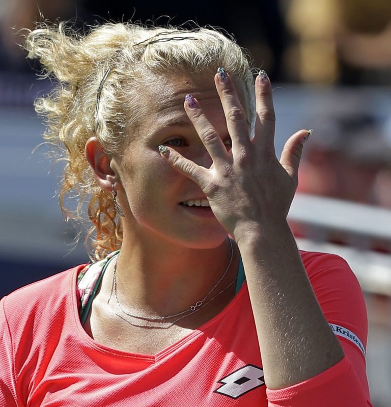 Česká tenistka Kateřina Siniaková počas zápasu úvodného kola US Open, v ktorom podľahla Ukrajine Eline Svitolinovej 0:6, 7:6 (5), 3:6. New York, 30. august 2017. Foto: SITA/AP.