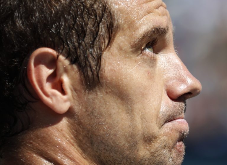 Francúzsky tenista Richard Gasquet počas zápasu úvodného kola US Open, v ktorom podľahol Argentínčanovi Leonardovi Mayerovi 6:3, 2:6, 4:6, 2:6. New York, 30. august 2017. Foto: SITA/AP.