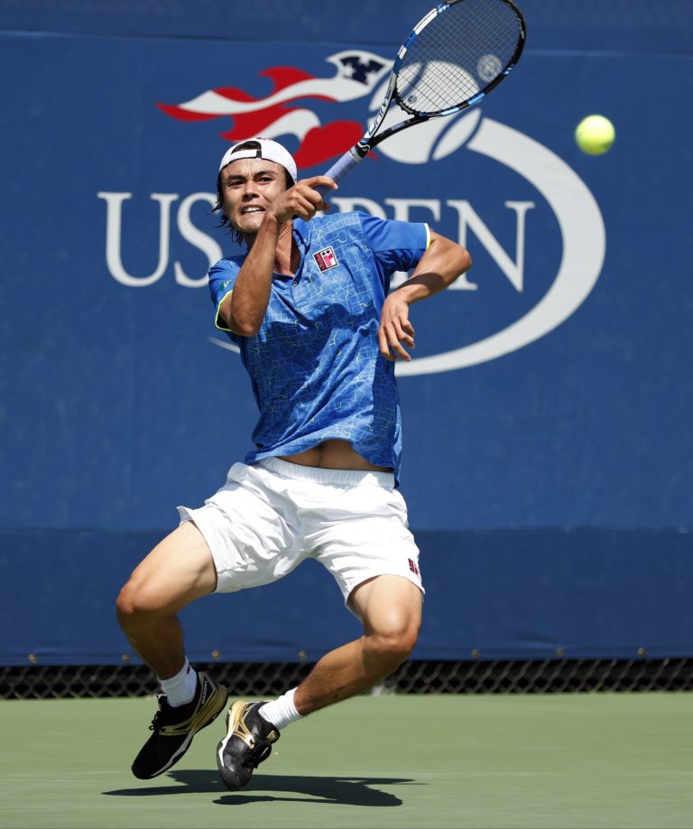 Japonský tenista Taro Daniel počas zápasu úvodného kola US Open, v ktorom zdolal Američana Tommyho Paula 6:1, 4:6, 4:6, 6:2, 6:2. New York, 30. august 2017. Foto: SITA/AP.