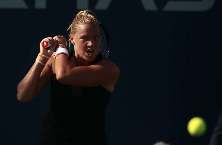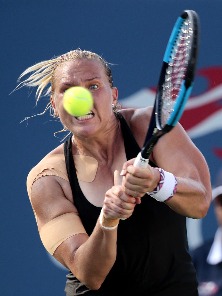 Estónska tenistka Kaia Kanepiová počas osemfinálového zápasu US Open, v ktorom zdolala Rusku Dariu Kasatkinovú dvakrát 6:4. New York, 4. september 2017. Foto: SITA/AP.