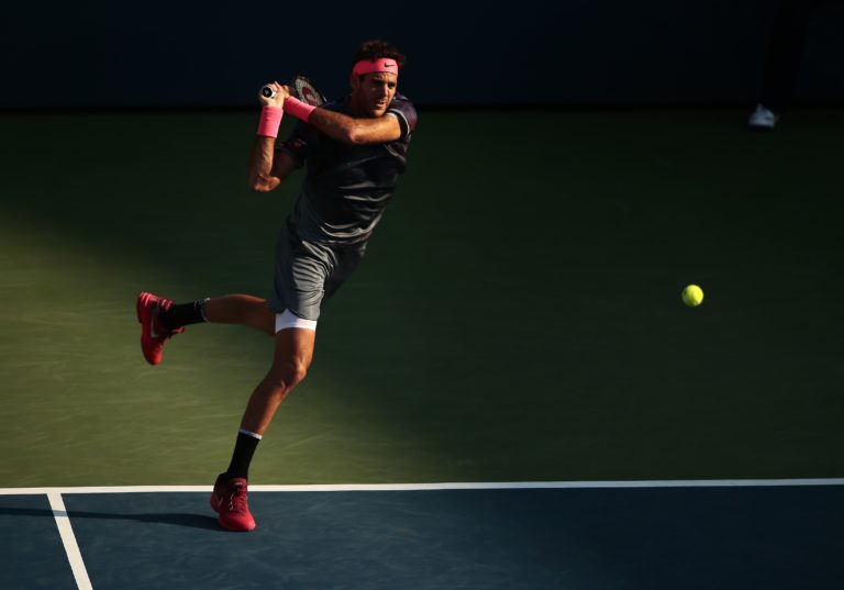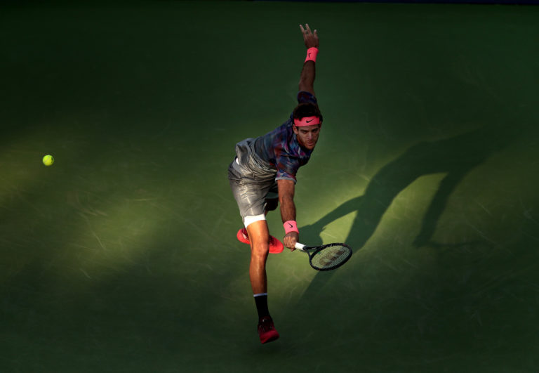 Argentinsky tenista Juan Martín Del Potro počas osemfinálového zápasu na US Open, v ktorom zdolal Rakúšana Dominica Thiema 1:6, 2:6, 6:1, 7:6 (1), 6:4. New York, 4. september 2017. Foto: SITA/AP.