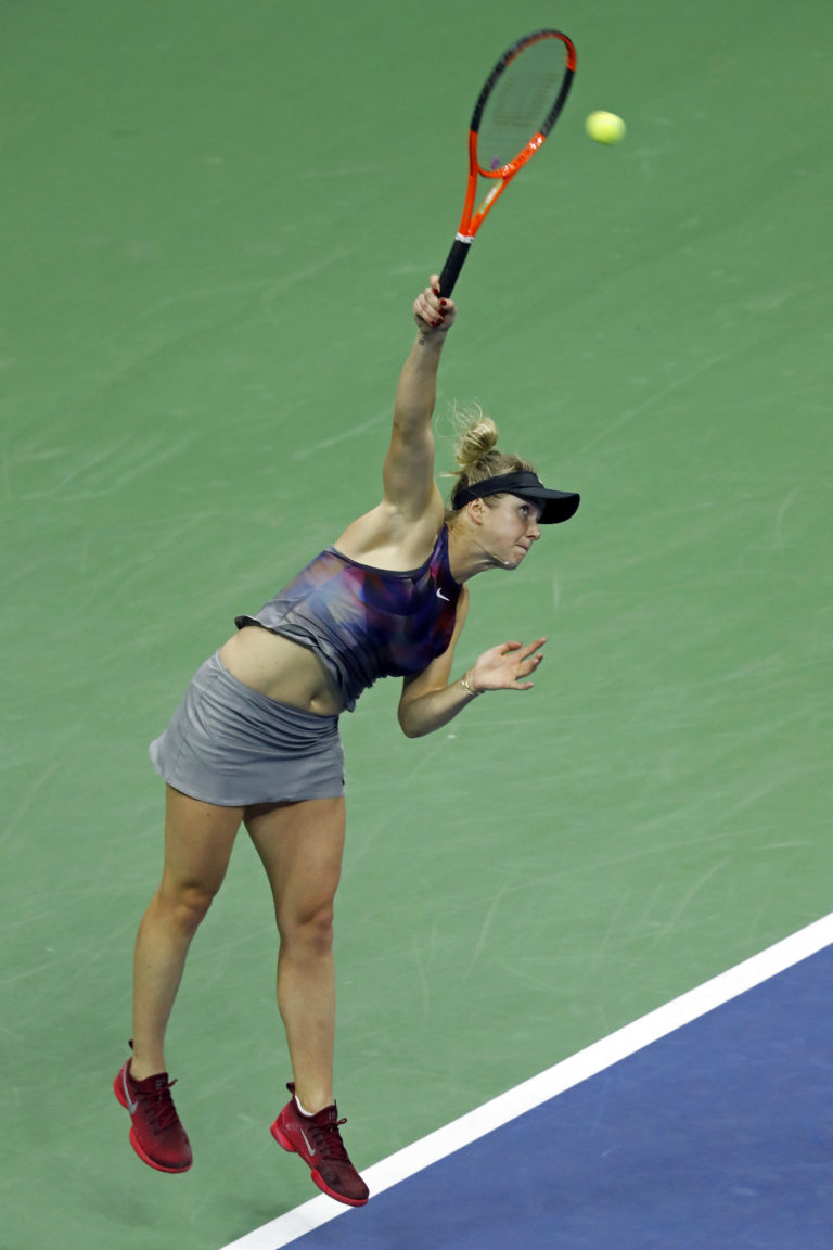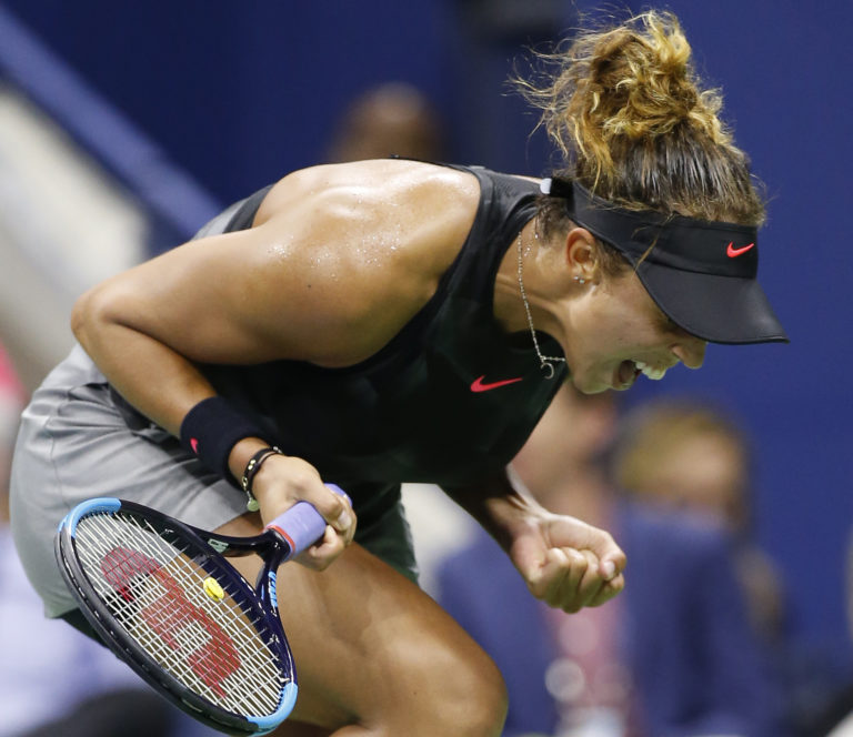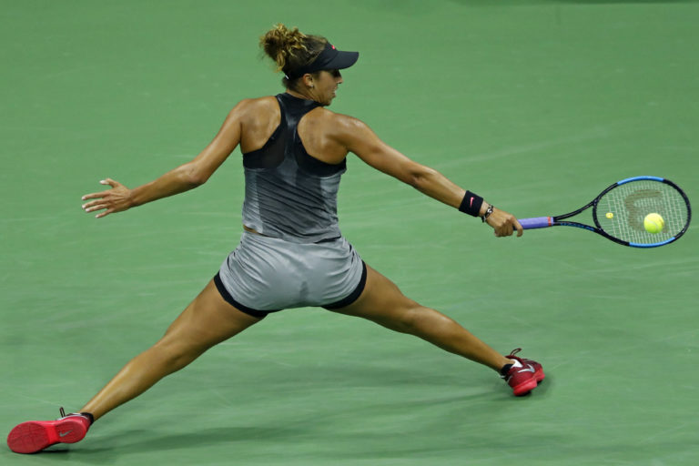 Americká tenistka Madison Keysová počas osemfinálového zápasu US Open, v ktorom zdolala Ukrajinku Elinu Svitolinovú 7:6 (2), 1:6, 6:4. New York, 4. september 2017. Foto: SITA/AP.